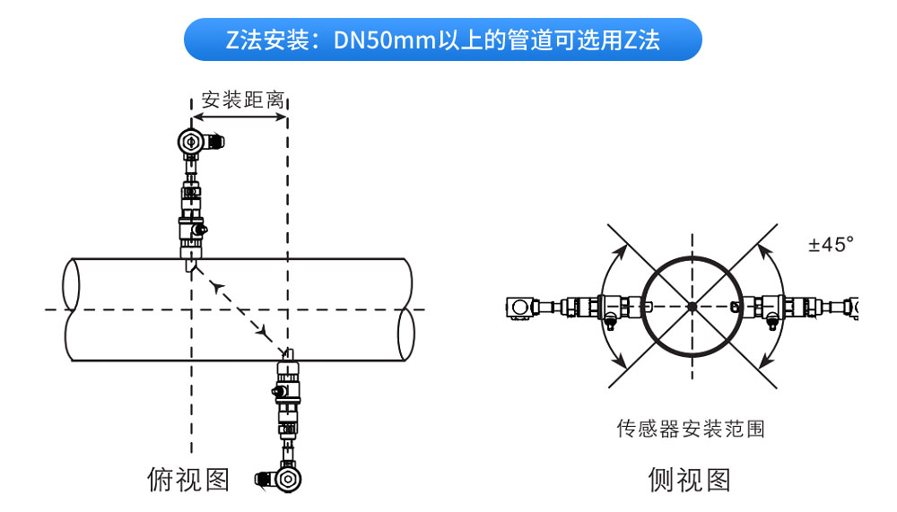 外夾壁掛式超聲波流量計利用了低電壓,多脈沖時差原理,采用高精度和超穩定的雙平衡信號差分發射、差分接收數字檢測技術來測量順流和逆流方向的聲波傳輸時間,根據時差計算出流速。具有穩定性好、零點漂移小、測量精度高,量程比寬抗干擾性強等特點。CN1