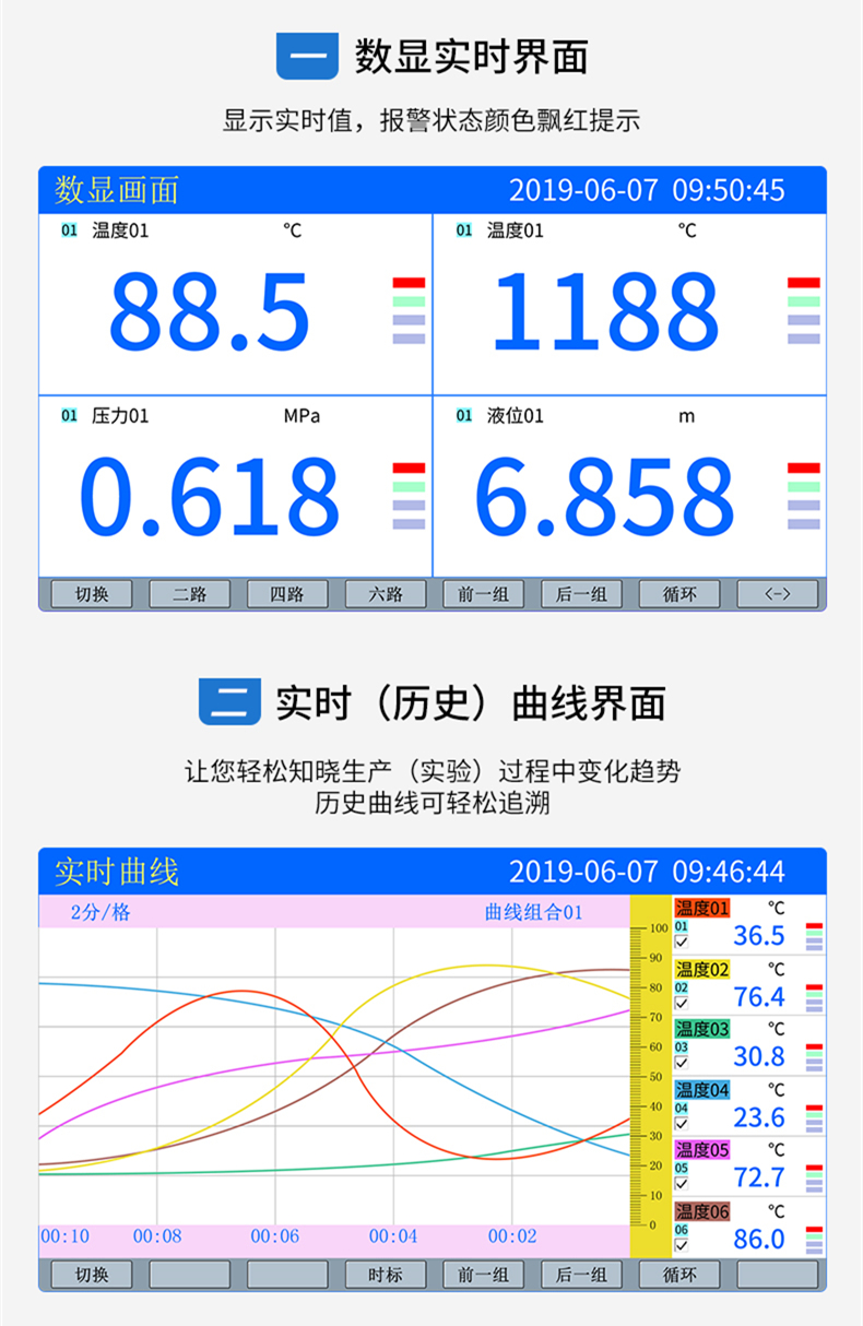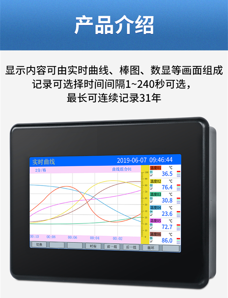 聯測_SIN-R7000C_(觸摸屏)1-8路可選_7英寸無紙記錄儀_溫度_壓力_多種參數