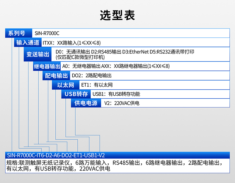SIN-R7000C觸摸超薄無紙記錄儀采用新型大規模集成電路,對輸入、輸出、電源、信號采取可靠保護和強抗干擾設計。8路萬能信號輸入(可組態選擇輸入:標準電壓、標準電流、熱電偶、熱電阻、毫伏等)??蓭?路報警輸出,1個饋電輸出,RS485通訊接口,以太網接口,微型打印機接口和USB接口,SD卡插座;具有強大的顯示功能,實時曲線顯示,歷史曲線追憶,棒圖顯示,報警狀態顯示。